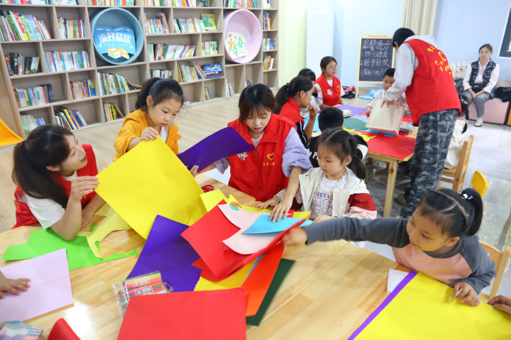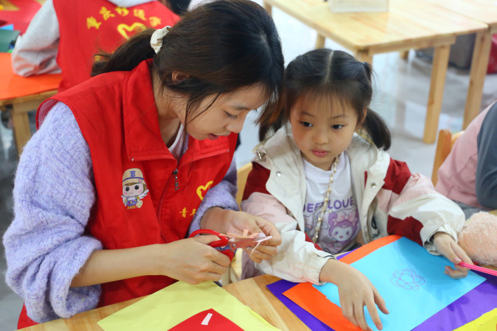巧手备齐剪纸具,温情化身引路人。活动现场,志愿者们提前备好卡纸、剪刀、双面胶等工具,化身“手工老师”,耐心地向小朋友们讲解剪纸的基础技巧。志愿者手把手教学,鼓励孩子们发挥想象力;小朋友们将对老人的祝福融入剪纸创作,小朋友们听得认真、学得专注,时而低头思索图案设计,时而举手向志愿者请教。不一会儿,一幅幅充满童趣与心意的剪纸作品陆续诞生。活动尾声,志愿者和小朋友们一起将剪纸作品整理打包,共同将这份特别的礼物,小心翼翼收集好,待重阳节到来时再将这份心意呈给敬老院的老人们。